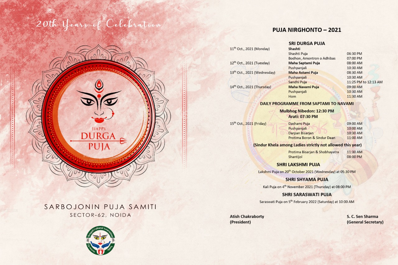 Out of this big group, a small team of Bengalis decided to launch a social group that will dedicate them in social and Community Activities. The group they proudly named Bengali Cultural Association and in 2002 with a meagre collection of Rs 30000.00 (Thirty Thousand Only), they organized a small Durga Puja amidst round the clock participation and commitment in a small Park. This group got registered as a full official group in 2003 with the Noida Authorities and got the license to spread their wings. Year after year more and more people joined and the association swelled to more than 300 members.